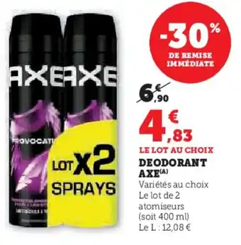 Deodorant axe : offres et promos Super U à découvrir