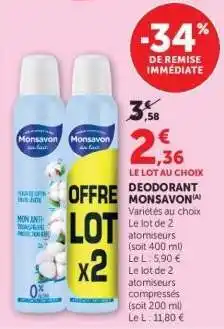 Actuellement en offre chez Super U : Déodorant MONSAVON ✅ Valable du 8-04 au 19-04.
