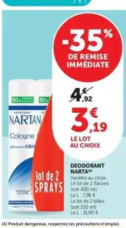 Offre Déodorant Narta chez Super U