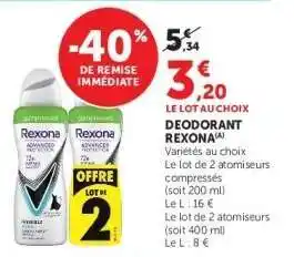 DEODORANT REXONA offres et promotions en ligne chez Super U