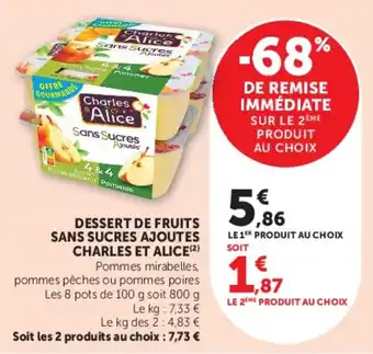 Actuellement en offre chez Super U : Dessert de fruits sans sucres ajoutes charles et alice ✅ Valable du 5-05 au 10-05.