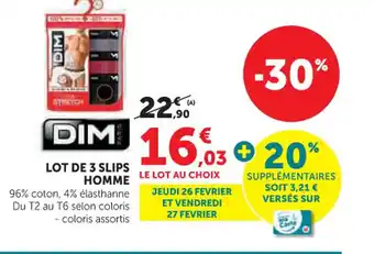 Actuellement en offre chez Super U : DIM Lot de 3 slips homme ✅ Valable du 24-02 au 8-03.
