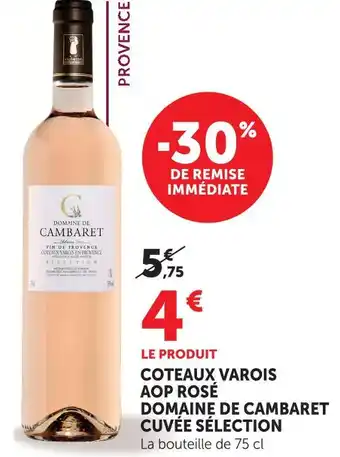 Offre Domaine de cambaret coteaux varois aop rosé cuvée sélection chez Super U
