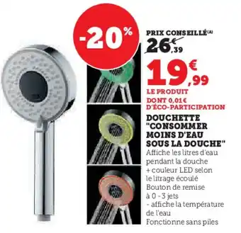 Le prix de l'offre Douchette consommer moins d'eau sous la douche se trouve également en haut de la page, ainsi que la date à laquelle l'offre est disponible. Vous pouvez également vérifier les prix dans le Catalogue Super U actuel ou sur le site Internet de Super U. Les offres vous permettent d'acheter les produits Super U au prix le plus bas.
