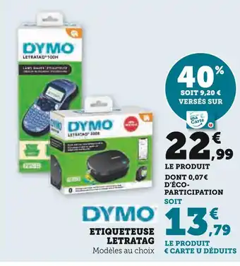 Actuellement en offre chez Super U : Dymo etiqueteuse letratag modèles au choix ✅ Valable du 6-01 au 18-01.