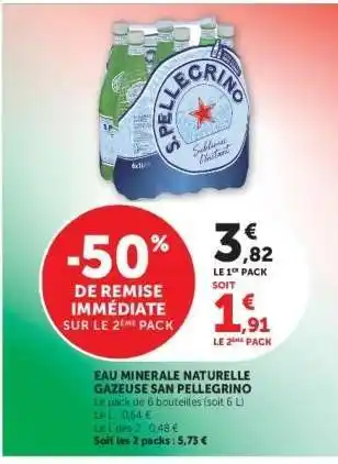 Offre Eau Minérale Naturelle Gazeuse 'San Pellegrino' chez Super U
