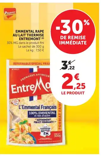 Actuellement en offre chez Super U : Entremont emmental râpé au lait thermisé ✅ Valable du 10-03 au 22-03.