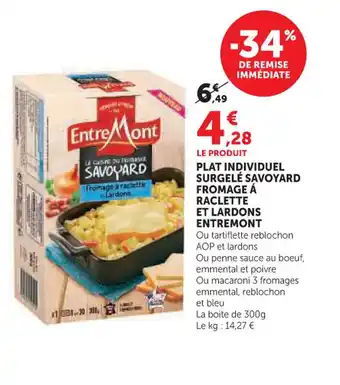 Une promotion ENTREMONT Plat individuel surgelé savoyard fromage á raclette et lardons prévue la semaine prochaine ?