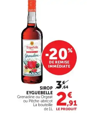Le prix de l'offre EYGUEBELLE Sirop se trouve également en haut de la page, ainsi que la date à laquelle l'offre est disponible. Vous pouvez également vérifier les prix dans le Catalogue Super U actuel ou sur le site Internet de Super U. Les offres vous permettent d'acheter les produits Super U au prix le plus bas.