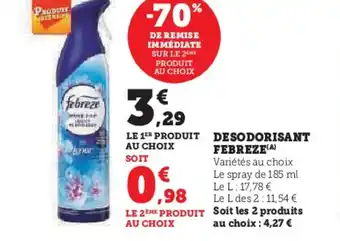 En plus de l'offre FEBREZE Desodorisant, Super U propose une large gamme de produits. Consultez le Catalogue Super U hebdomadaire pour découvrir les meilleures offres et promotions. En plus de FEBREZE Desodorisant, il y a aussi : FEBREZE Desodorisant, Desodorisant febreze & Febreze désodorisant spray linge frais.