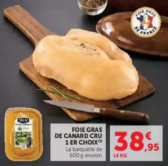 Actuellement en offre chez Super U : Foie gras de canard cru 1 er choix ✅ Valable du 10-03 au 22-03.