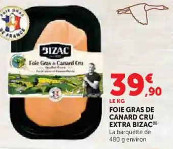 Actuellement en offre chez Super U : Foie gras de canard cru extra bizac ✅ Valable du 24-02 au 8-03.