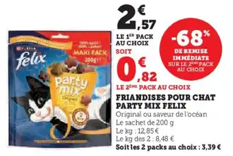 Actuellement en offre chez Super U : Friandises pour chat party mix felix ✅ Valable du 27-01 au 8-02.