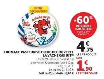 Offre FROMAGE PASTEURISE OFFRE DECOUVERTE LA VACHE QUI RIT chez Super U