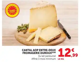 Actuellement en offre chez Super U : Fromagerie duroux cantal aop entre-deux ✅ Valable du 10-03 au 22-03.