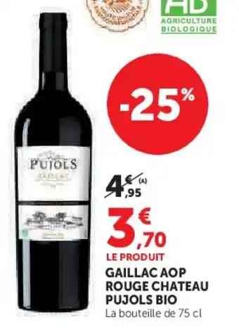 Actuellement en offre chez Super U : Gaillac aop rouge chateau pujols bio ✅ Valable du 10-03 au 22-03.