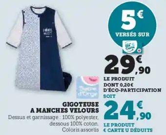 Actuellement en offre chez Super U : Gigoteuse a manches velours ✅ Valable du 6-01 au 18-01.