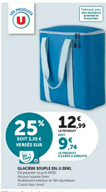 Actuellement en offre chez Super U : Glacière souple 35l u 2en1 ✅ Valable du 28-04 au 10-05.
