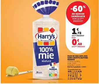 Offre Harry's pain de mie 100% mie sans croûte nature chez Super U