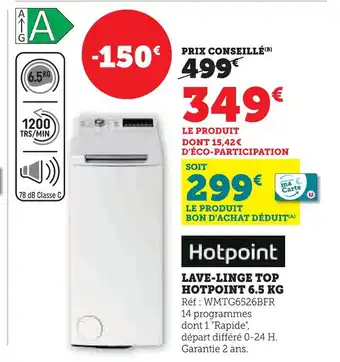 Offre Hotpoint lave-linge top 6.5 kg chez Super U