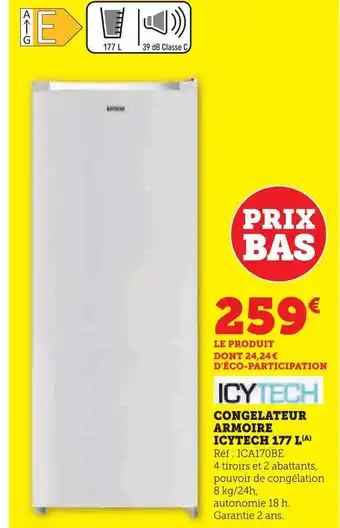 Actuellement en offre chez Super U : Icytech congélateur armoire 177 l ✅ Valable du 20-01 au 8-02.
