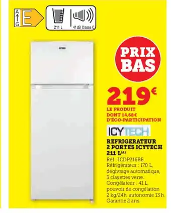 Actuellement en offre chez Super U : ICYTECH Refrigerateur 2 portes ✅ Valable du 20-01 au 8-02.