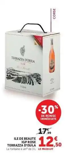 Actuellement en offre chez Super U : ILE DE BEAUTE IGP ROSE TERRAZZA D'ISULA ✅ Valable du 28-04 au 10-05.