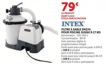 Actuellement en offre chez Super U : Intex filtre à sable 2m3/h pour piscine ✅ Valable du 24-03 au 19-04.