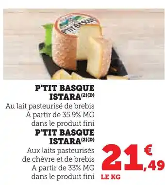 Actuellement en offre chez Super U : Istara p'tit basque au lait pasteurisé de brebis ✅ Valable du 27-01 au 8-02.