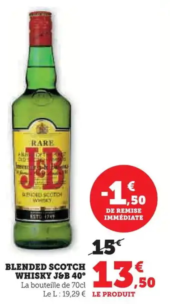 Actuellement en offre chez Super U : J&b blended scotch whisky 40° ✅ Valable du 20-01 au 1-02.