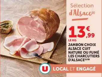 Actuellement en offre chez Super U : Jambon choix alsace cuit nature ou fumé les charcutiers d'alsace ✅ Valable du 5-05 au 10-05.