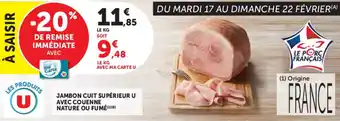 Actuellement en offre chez Super U : Jambon cuit supérieur u avec couenne nature ou fumé ✅ Valable du 17-02 au 1-03.