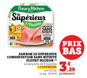 Actuellement en offre chez Super U : Jambon le superieur conservation sans nitrite fleury michon ✅ Valable du 20-01 au 1-02.