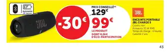 Actuellement en offre chez Super U : JBL Enceinte portable charge 5 ✅ Valable du 21-04 au 3-05.