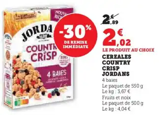 Actuellement en offre chez Super U : JORDANS Cereales country crisp ✅ Valable du 17-12 au 24-12.