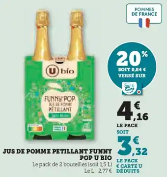 Actuellement en offre chez Super U : Jus de pomme petillant funny pop u bio ✅ Valable du 27-01 au 8-02.