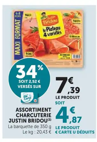 Actuellement en offre chez Super U : Justin bridou assortiment charcuterie le plateau 4 variétés ✅ Valable du 17-02 au 1-03.