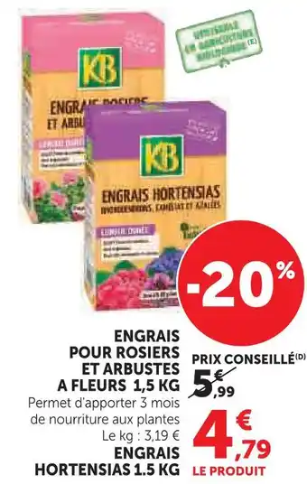 Kb engrais pour rosiers et arbustes à fleurs 1.5 kg offres et promotions en ligne chez Super U