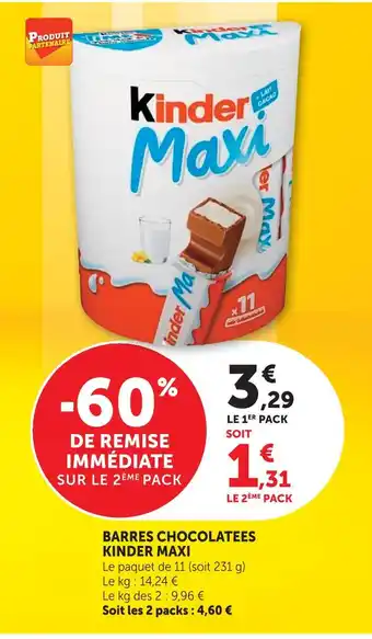 Kinder maxi barres chocolatées : offres et promos Super U à découvrir