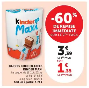 Offre KINDER MAXI Barres chocolatees chez Super U