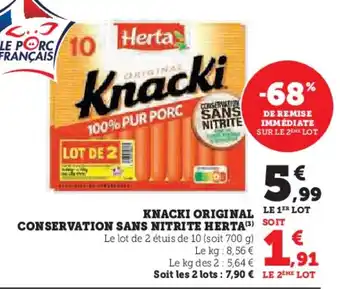 Actuellement en offre chez Super U : Knacki original conservation sans nitrite herta ✅ Valable du 27-01 au 8-02.
