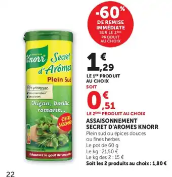 Actuellement en offre chez Super U : KNORR Assaisonnement secret d'aromes ✅ Valable du 21-04 au 3-05.
