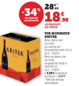 KRITER Vin mousseux : offres et promos Super U à découvrir