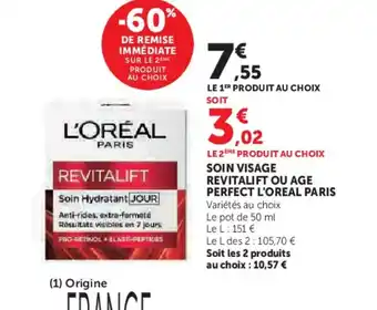 Offre L'OREAL PARIS Soin visage revitalift ou age perfect chez Super U