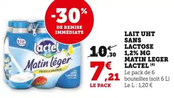 Lactel lait uht sans lactose 1,2% mg matin leger offres et promotions en ligne chez Super U