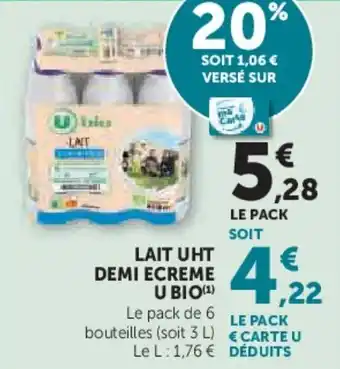 Actuellement en offre chez Super U : Lait uht demi ecreme u bio ✅ Valable du 17-02 au 1-03.