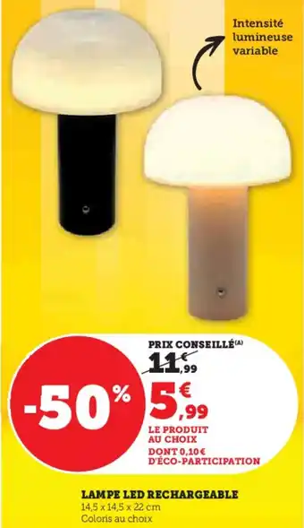 Le prix de l'offre Lampe led rechargeable se trouve également en haut de la page, ainsi que la date à laquelle l'offre est disponible. Vous pouvez également vérifier les prix dans le Catalogue Super U actuel ou sur le site Internet de Super U. Les offres vous permettent d'acheter les produits Super U au prix le plus bas.