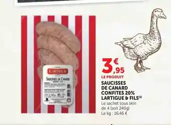 Actuellement en offre chez Super U : LARTIGUE & FILS Saucisses de canard confites 20% ✅ Valable du 24-02 au 8-03.