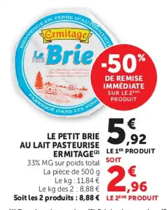 Actuellement en offre chez Super U : Le petit brie au lait pasteurise ermitage ✅ Valable du 5-05 au 10-05.