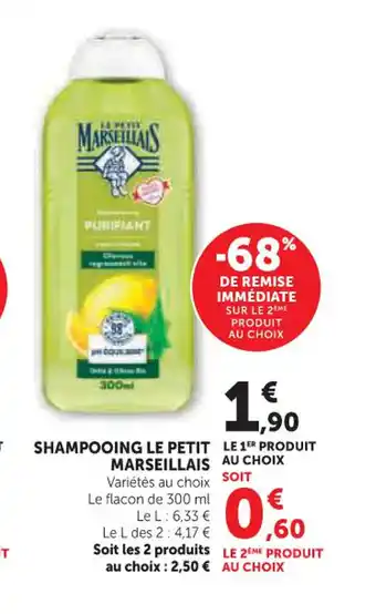 En plus de l'offre LE PETIT MARSEILLAIS Shampooing, Super U propose une large gamme de produits. Consultez le Catalogue Super U hebdomadaire pour découvrir les meilleures offres et promotions. En plus de LE PETIT MARSEILLAIS Shampooing, il y a aussi : Le petit marseillais shampooing lot de 2, Le petit marseillais - shampooing lot de 2 & LE PETIT MARSEILLAIS Shampooing nutrition karité & miel.
